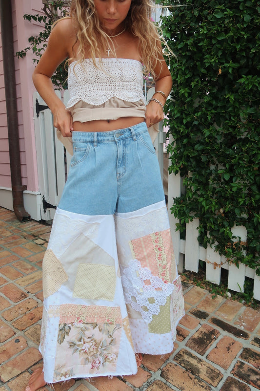 Chloes patchwork designs feature unique, one-of-a-kind designs handcrafted from vintage fabrics and upcycled materials. Because these items are very exclusive, they won’t be restocked once sold out. Look forward to fresh exclusive designs every month!