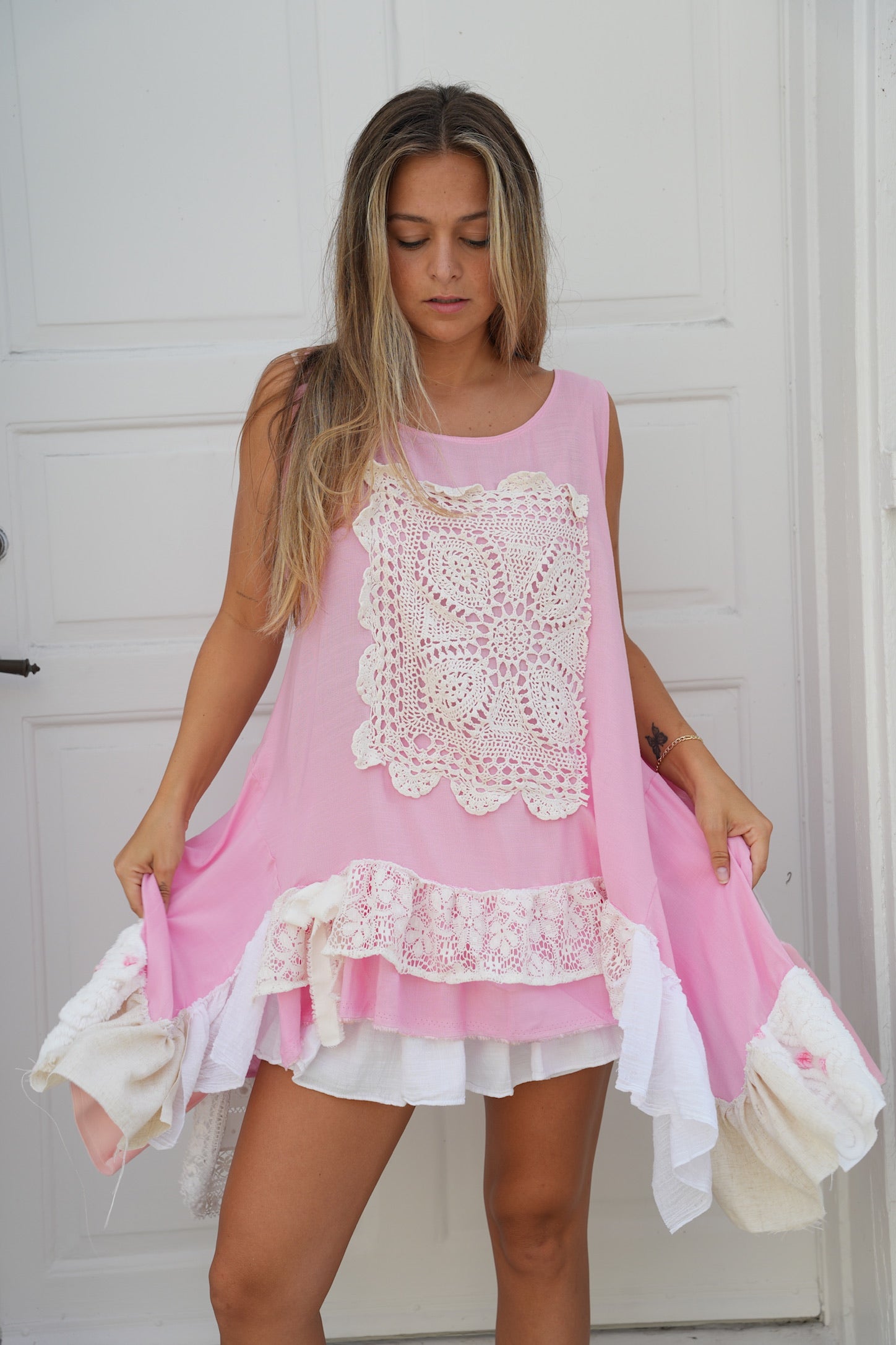 The Enchanted Tank is designed for versatile styling. Perfect for any occasion, it channels your vintage bohemian style effortlessly. Whether worn as a casual dinner top with linen pants, a beach cover-up, or a dress paired with shorts, this piece is an essential staple for your wardrobe.
