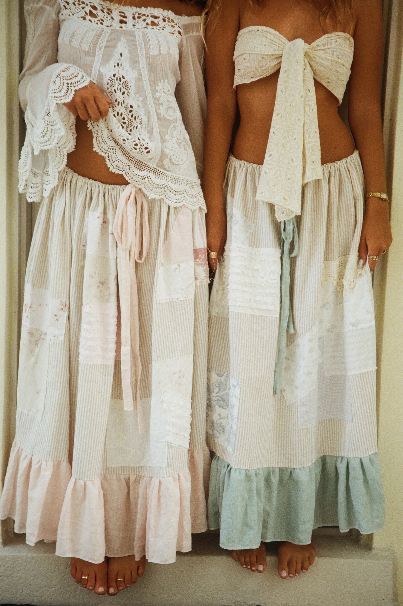 Celebrating two years of Bohemia with our limited edition Patchwork Maxi Skirts, a dreamy silhouette crafted entirely by hand from a soft linen blend. Each skirt is stitched together from vintage-inspired fabrics that follow a specific color story: